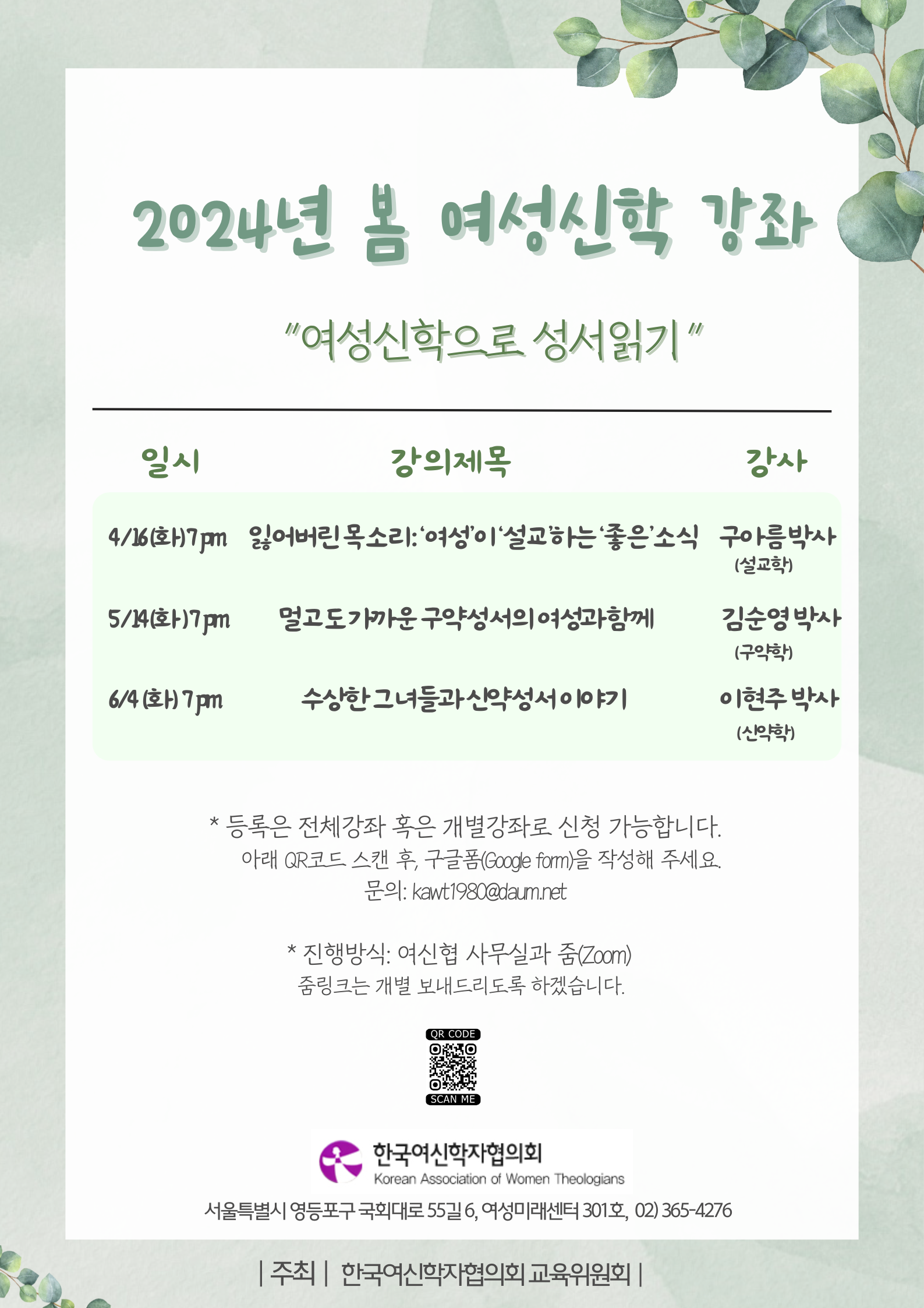 2024년 새 봄을 맞아 <여성신학 봄강좌>를 활짝 엽니다.