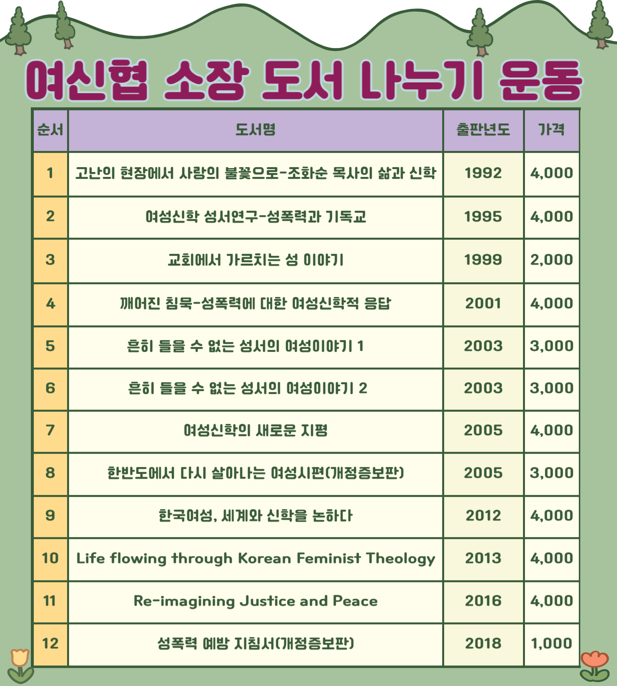 - 계좌: 국민은행 364301-04-225733 한국여신학자협의회(책+이름000)