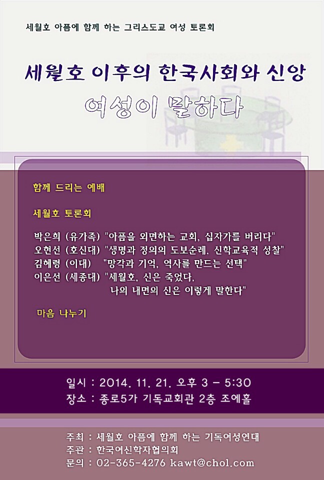 세월호 이후의 한국사회와 신앙, 여성이 말하다